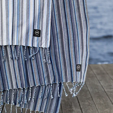 Recycelt Bio-Hamam Badelaken Grebbestad, Navy Blau/Weiß
