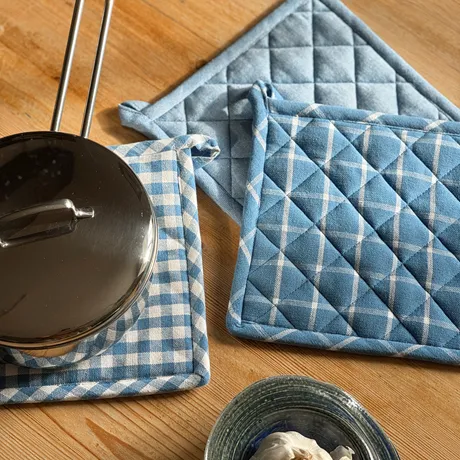 Recycled Pot Holder Recycling, 3-Assorted, Blue/White